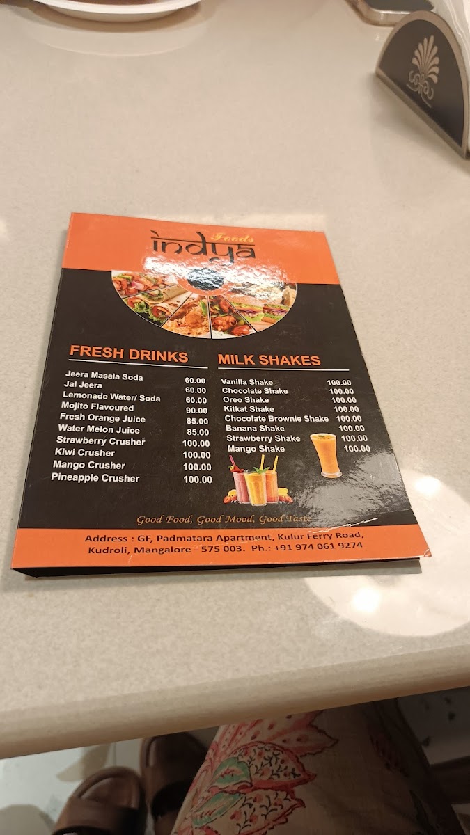 Indya Café Menu
